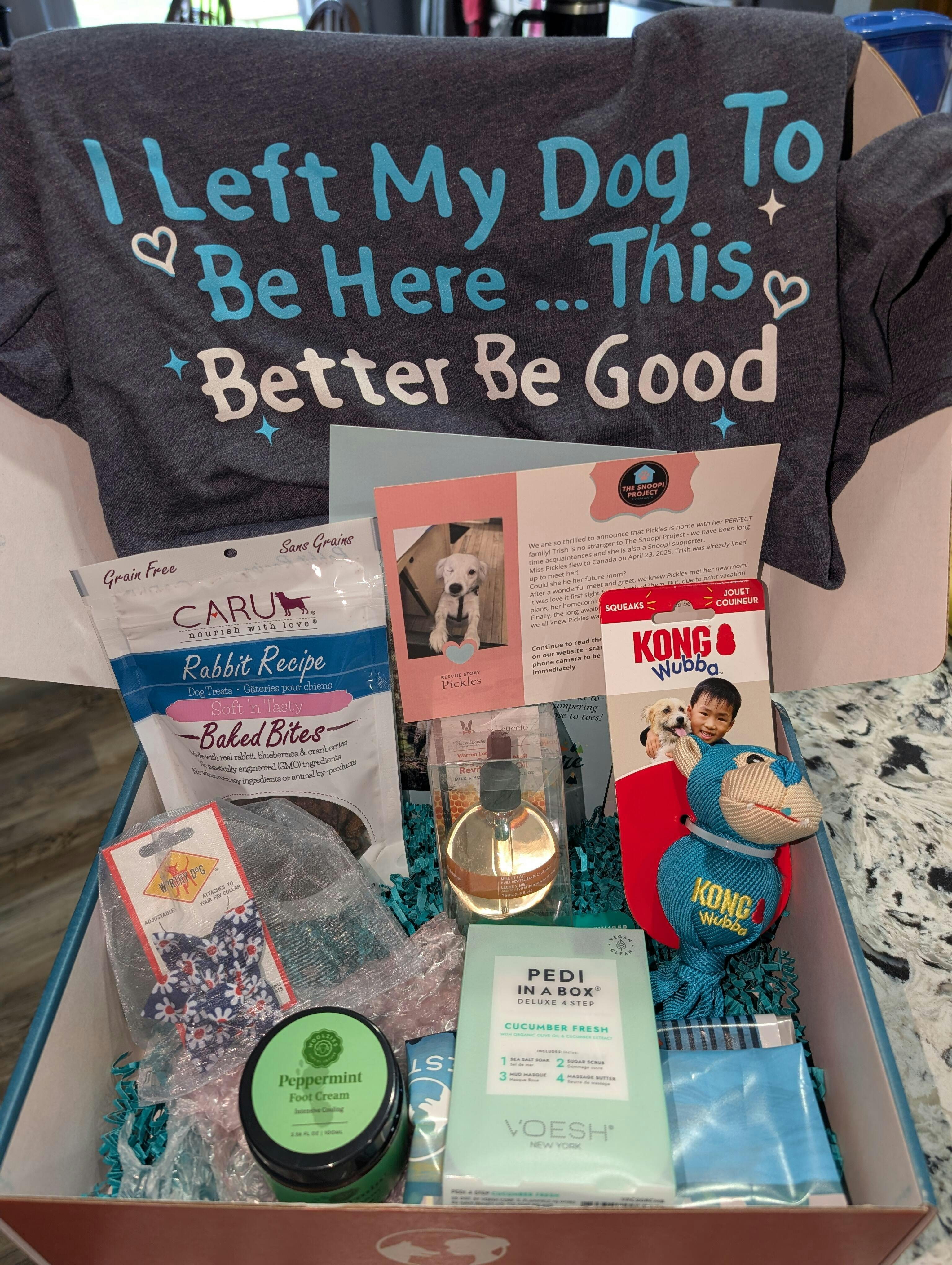 My pup, Trilby and I love getting our package. The dog treats are always tasty—according to Her—and the gifts/bonuses are fun for Mom. I wish the T-shirt option wasn’t out of my price point because I would love a cute tee or hoodie!