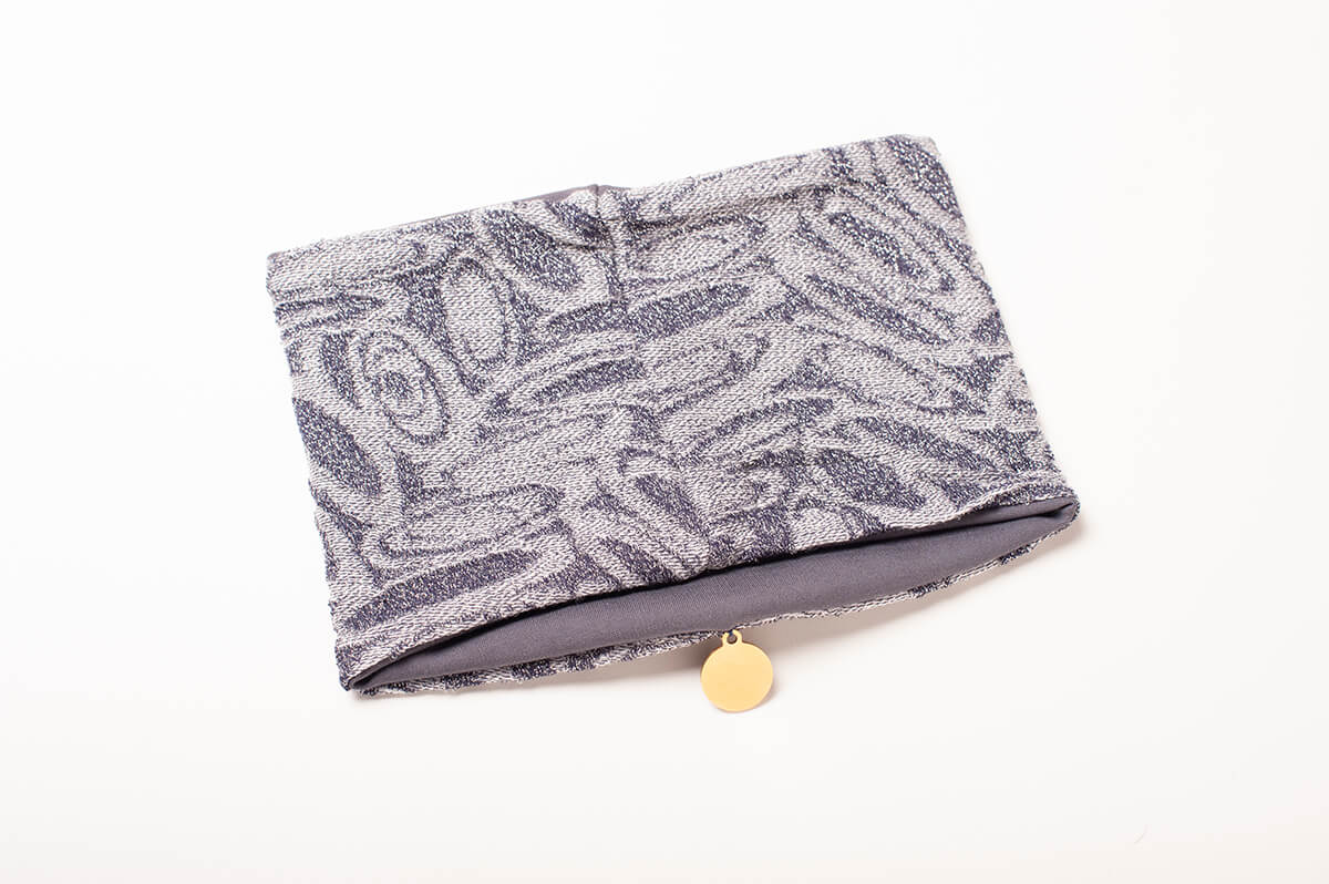 - Reversible Colors: Blue Metallic + Grey. Wear the side that matches your mood, or fold it over for a pop of color against pattern.