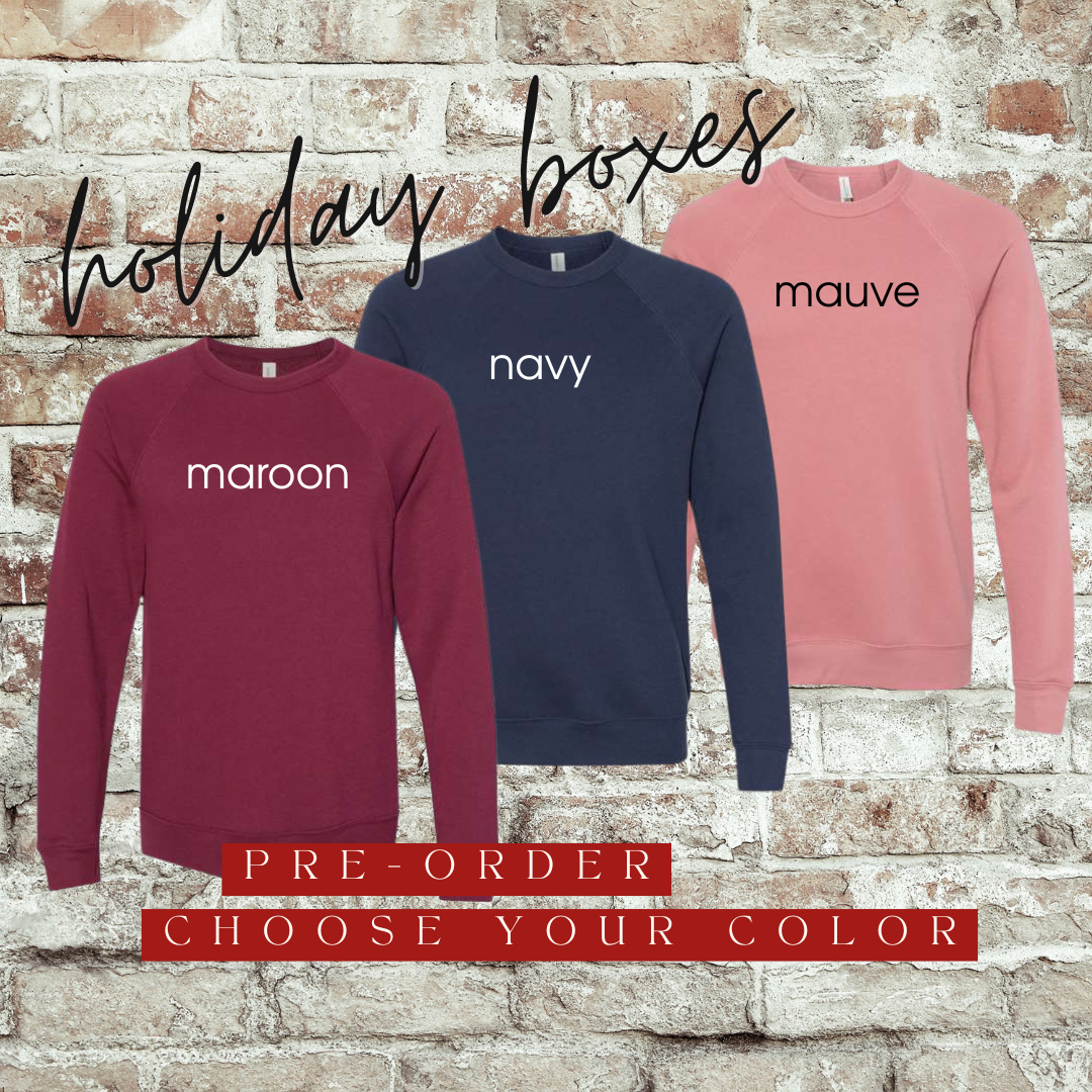 - Super Soft, Bella Canvas Sponge Fleece Sweatshirt (Your choice of navy, maroon or mauve)